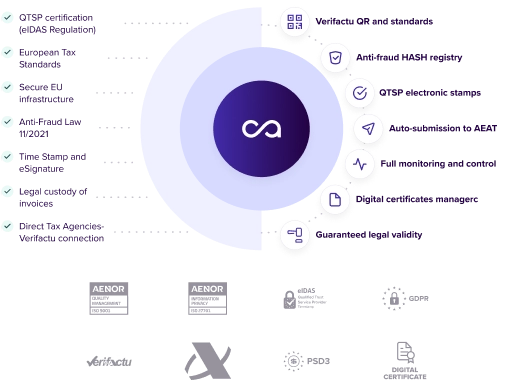 From freelancers and micro-SMEs to large multi-issuers, Tecalis Electronic Invoice extends compliance of Verifactu and other standards.