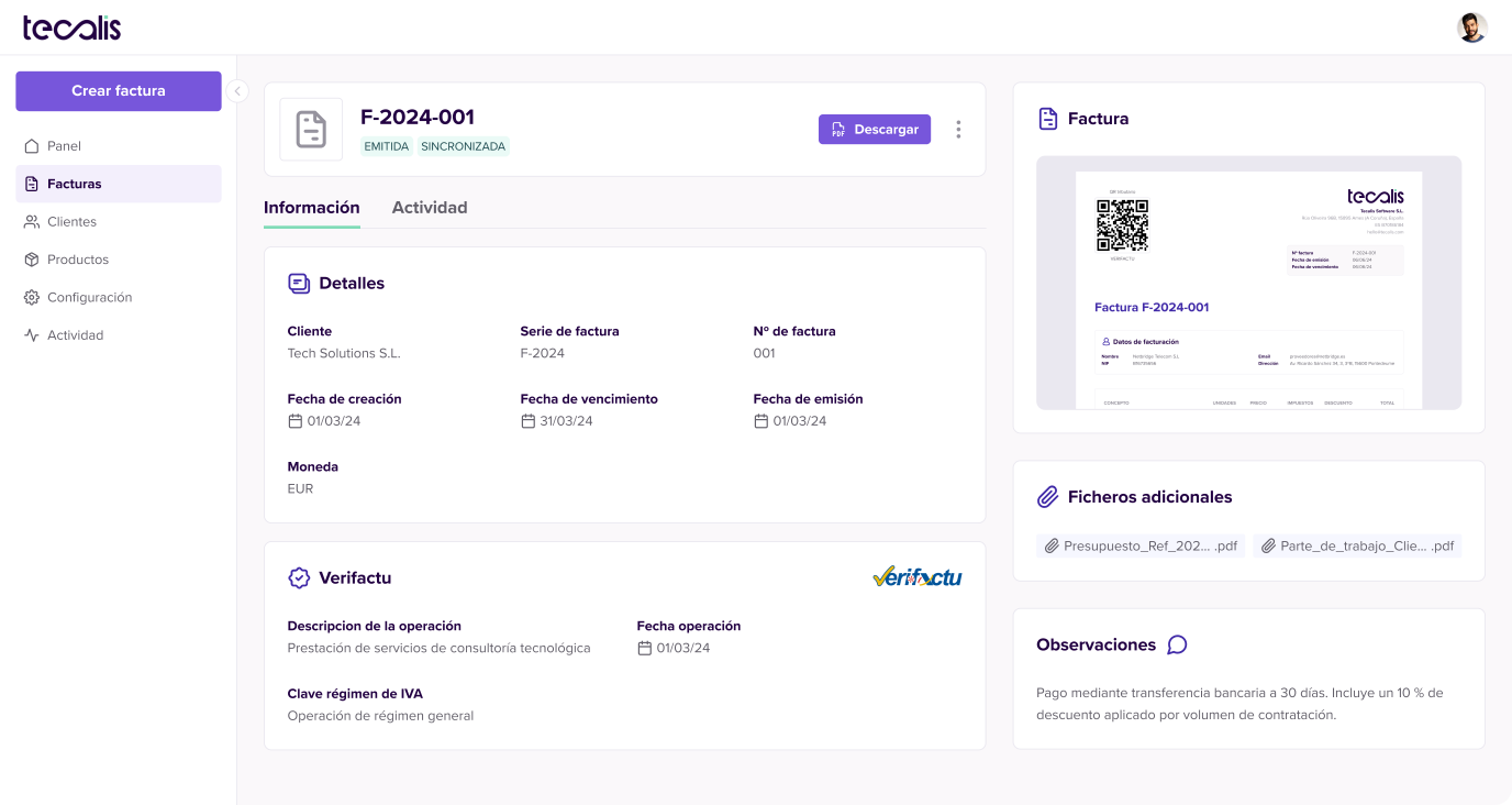 All companies and freelancers who issue electronic invoices in accordance with tax regulations are required to use Verifactu, using solutions such as Tecalis Electronic Invoicing to guarantee the validity and traceability of their documents.